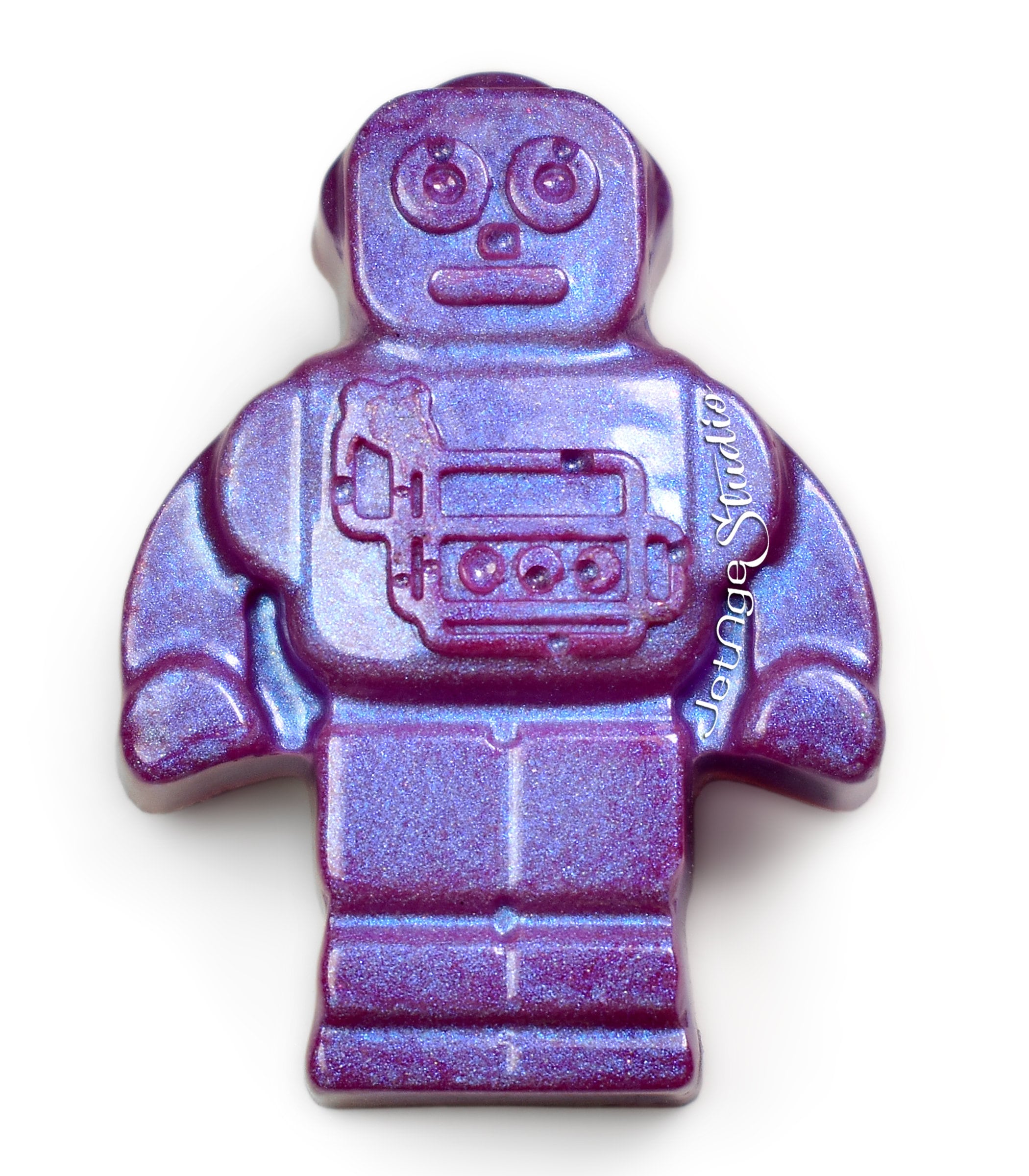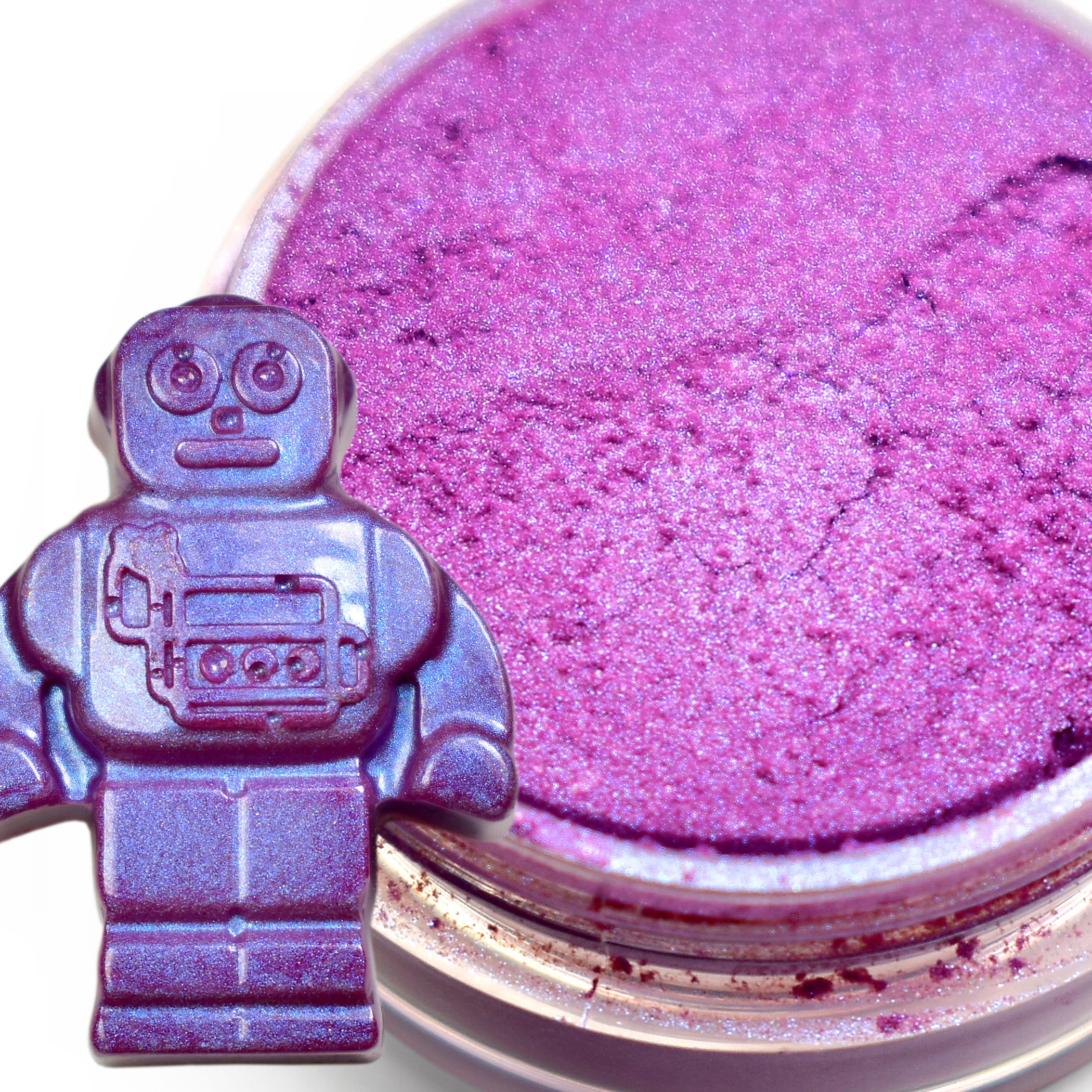 *Our little robot shaped sample is just a little pigment suspended in clear 2 part resin and cured in a silicone mold. A little truly goes a long way! Our mica powders are very saturated.