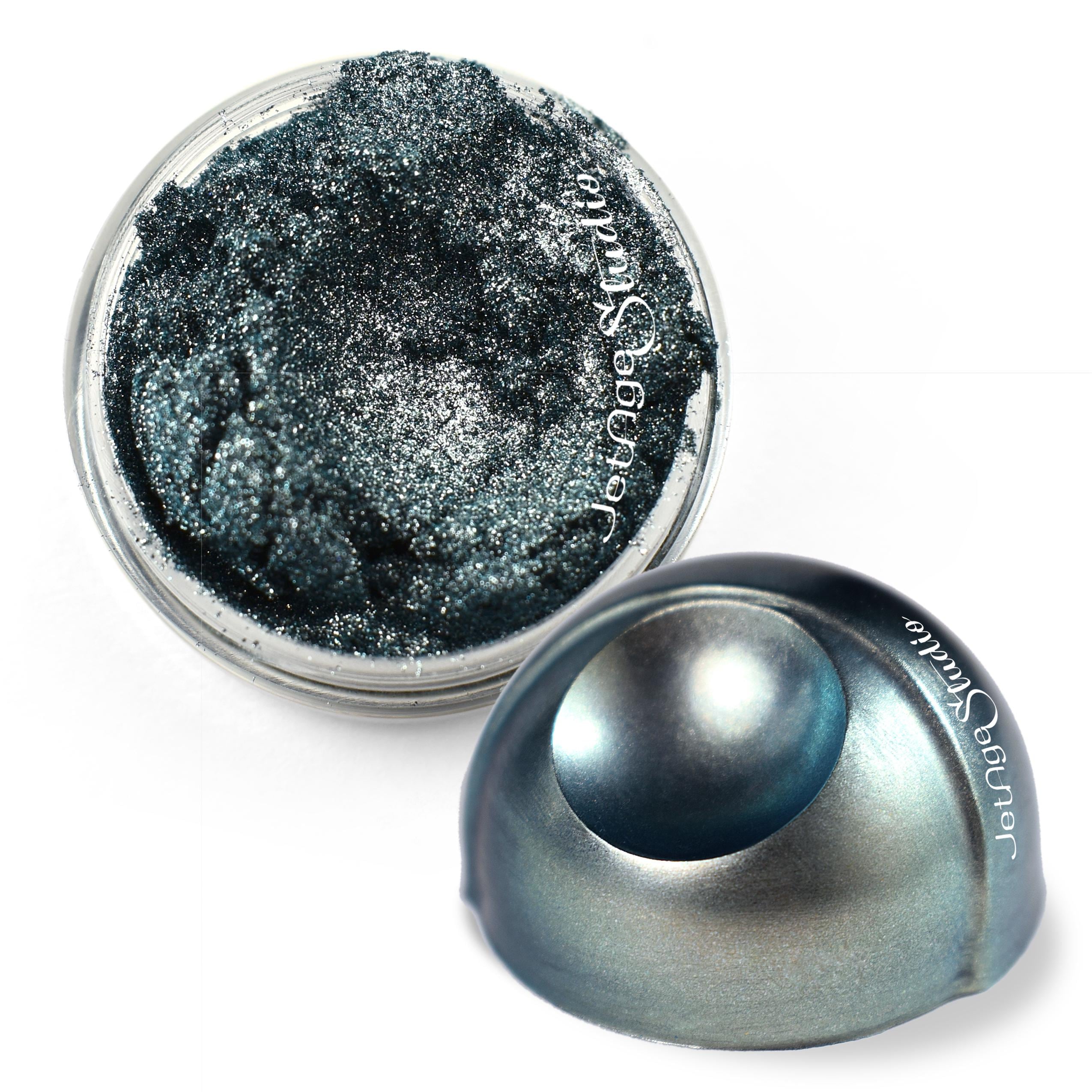 The Silk Series Chameleon Chrome powders are here! "Steel Blue" is a silky soft color shifting powder that has chroming qualities, especially when burnished over a tacky surface. The colors in this series are metallic, muted, color shifting and creates a silky smooth effect. A fun departure from the common highly intense colored powders we carry! The resin dome samples of each show the pigments brushed into the silicone shape mold and filled with black resin. They can also be mixed into clear resin for a completely different effect. Absolutely stunning as nail art or used in eye makeup. Cosmetic grade, but can be used in a multitude of creative art mediums such as resin, clear paint bases, polymer clay and varnishes. Endless application possibilities!