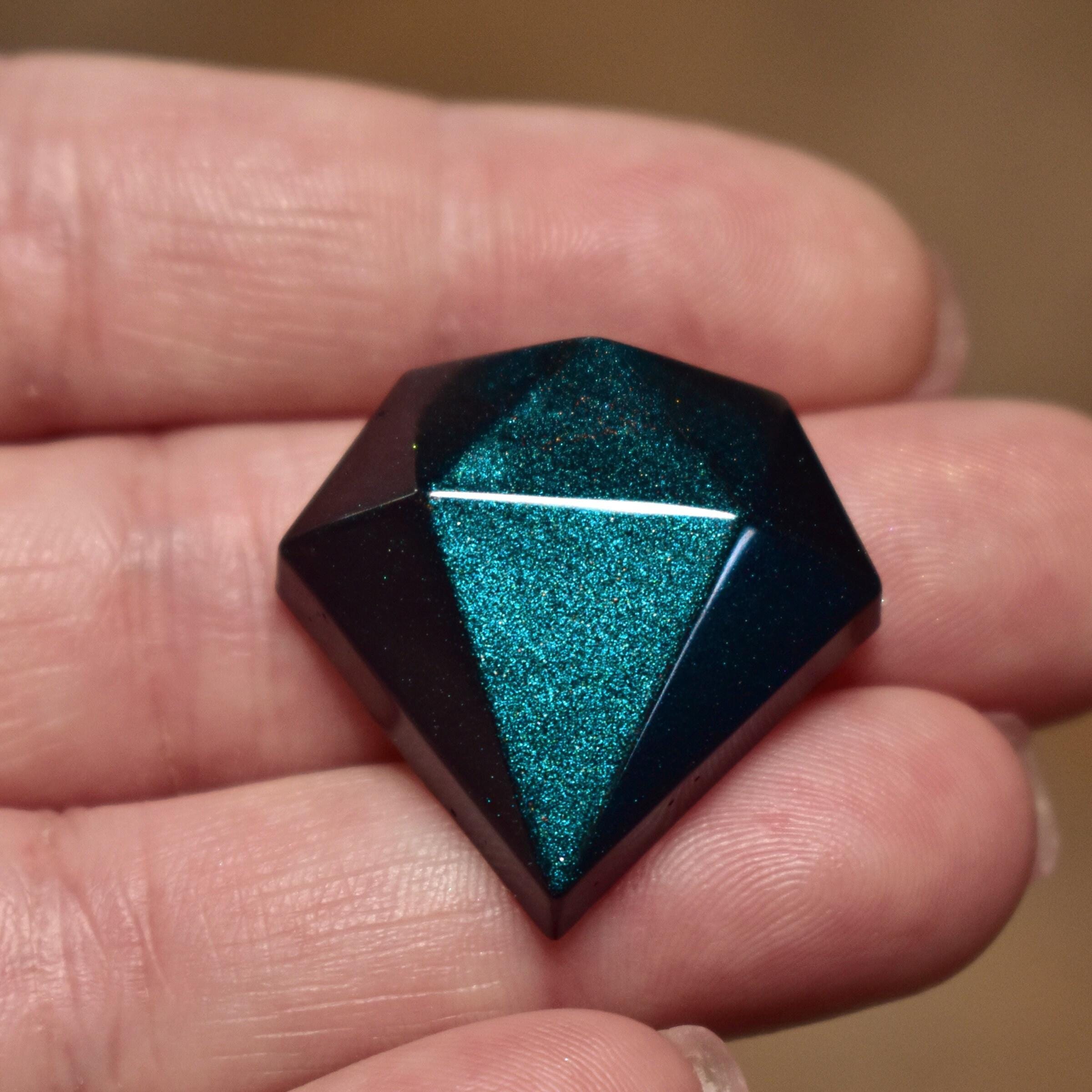 *Our diamond shaped sample is just a little pigment suspended in clear 2 part resin and cured in a silicone mold. A little truly goes a long way! A great alternative backing color when you want something dark, but not "black".